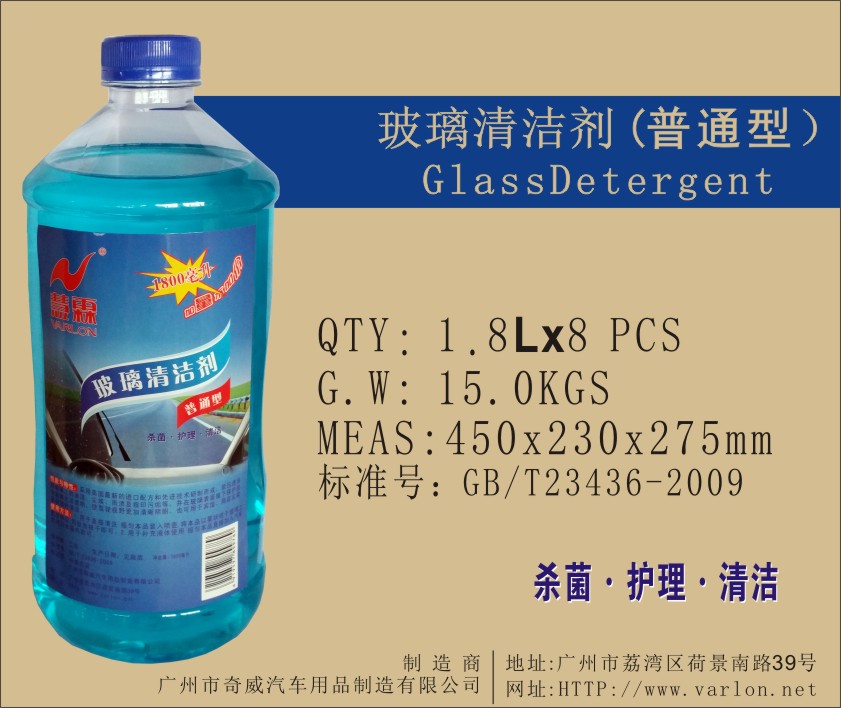 性能與特性:本品采用最新的進口配方和先進技術研制而成,能迅速消除玻璃上的油漬、塵埃、雨漬及指印污垢等,并在玻璃表面留下保護層,令玻璃光潔透明,使駕駛視野更加清